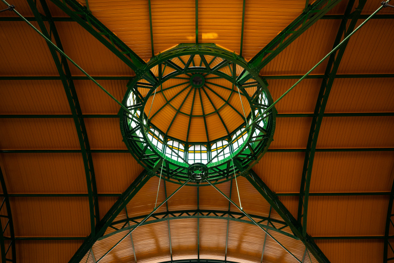 De oudste stalen onderdelen waren ooit bruin en later groen, maar werden bij eerdere renovaties zwart-wit geschilderd. “Het was vanaf de jaren zestig een rage om alles wat neutraler zwart-wit te schilderen. Zo zagen de stations er wat moderner uit en misschien was het ook wat praktischer qua onderhoud. Bovendien was na verloop van tijd het hout (waarschijnlijk met transparante vernislaag) in het dak helemaal zwart geworden dankzij de stoomtreinen. Dus fris en wit maken was toen wel logisch.”