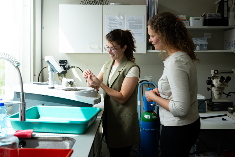 SRAL werd ingeschakeld voor een kleurhistorisch onderzoek. De restauratoren nemen verf monsters af van de stationskappen, maken van deze verfschilfertjes een blokje (zie foto) wat onderzocht kan worden onder de microscoop. Dan onderzoek je en analyseer je de kleurpigmenten. SRAL vond in het laboratorium uiteindelijk een donkerdere kleur groen dan wat bij de perronkappen gevonden is.” In een zogenaamde kleurentrap of stratigrafie is precies te zien welke kleuren er allemaal gevonden zijn: onder meer wit, zwart, groen, bruin en menie.